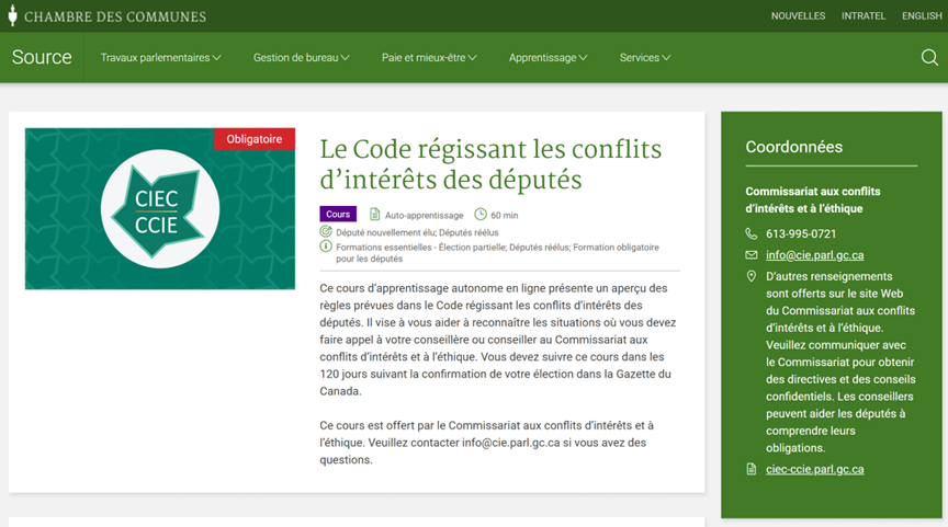 L’un des objectifs énoncés dans le Code consiste à montrer au public que les députées et députés doivent respecter des normes qui font passer l’intérêt public avant leurs intérêts personnels et à établir un mécanisme transparent permettant au public de juger qu’il en est ainsi.